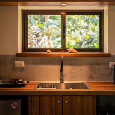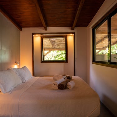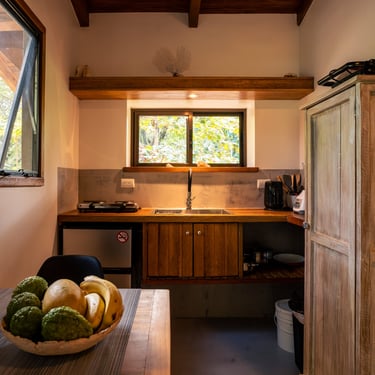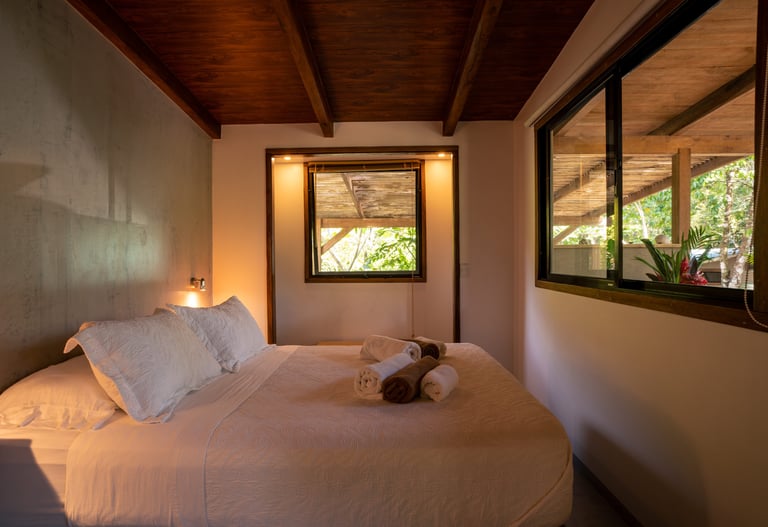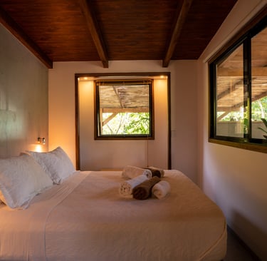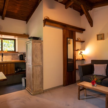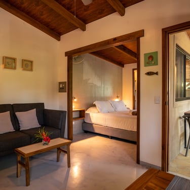 Welcome to our cabin designed for two, an intimate retreat spanning 45m2. More than a space, it's an experience. With a fully equipped kitchen, queen-size bed, and a bathroom with hot water, we blend comfort and charm. Enjoy modern entertainment with a Smart TV and unwind in the cozy indoor living area. From the balcony, immerse yourself in stunning jungle views and embrace tranquility on the private terrace. The pool and barbecue area are shared spaces, while everything else is exclusively yours. Create unforgettable memories in our cabin crafted for pleasure and privacy, offering a unique escape into nature's embrace.
