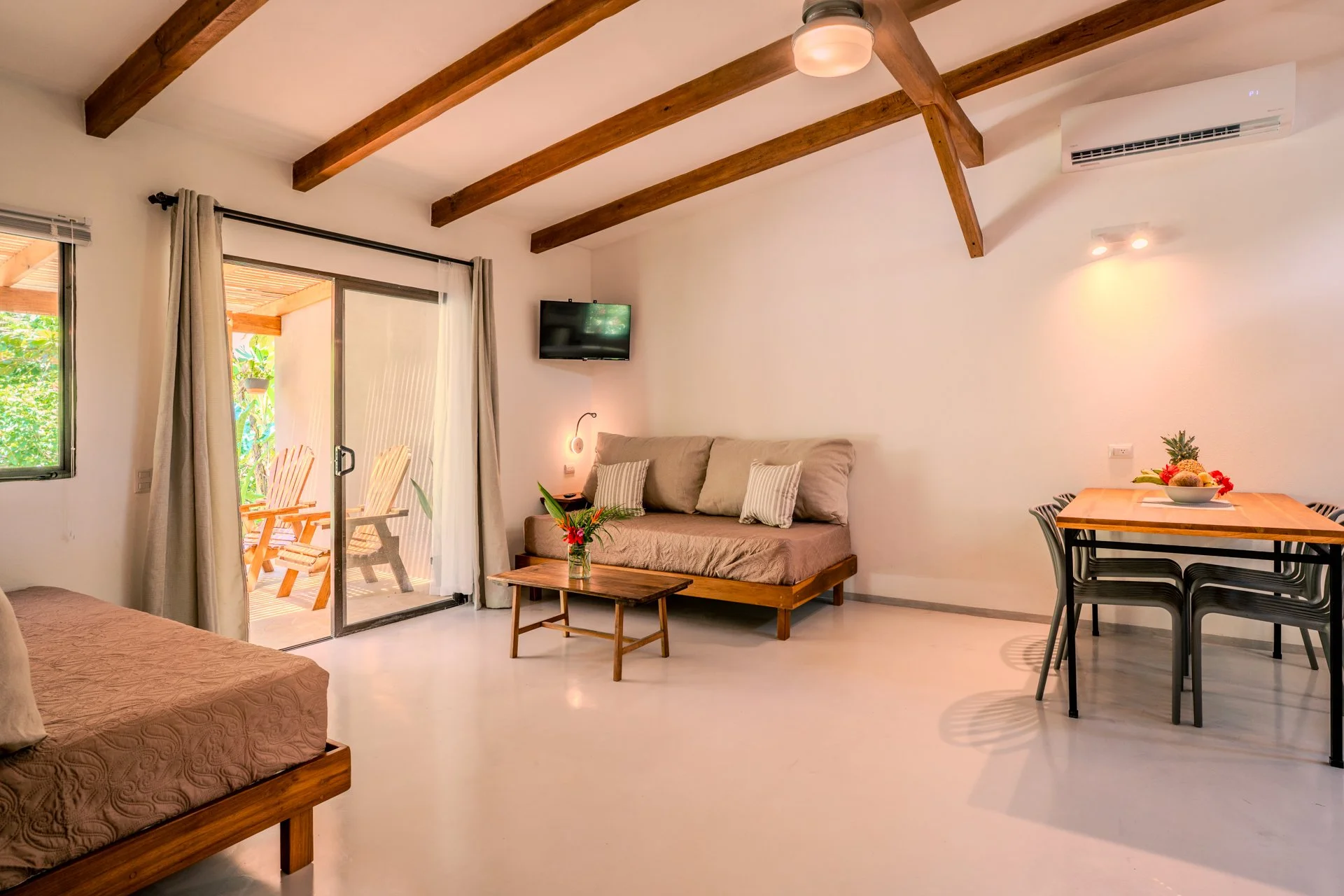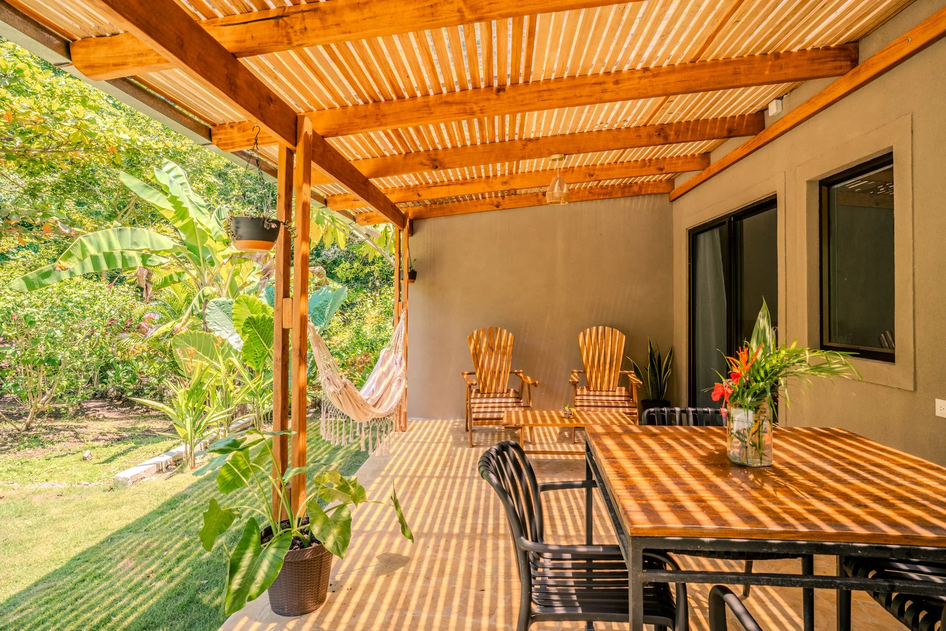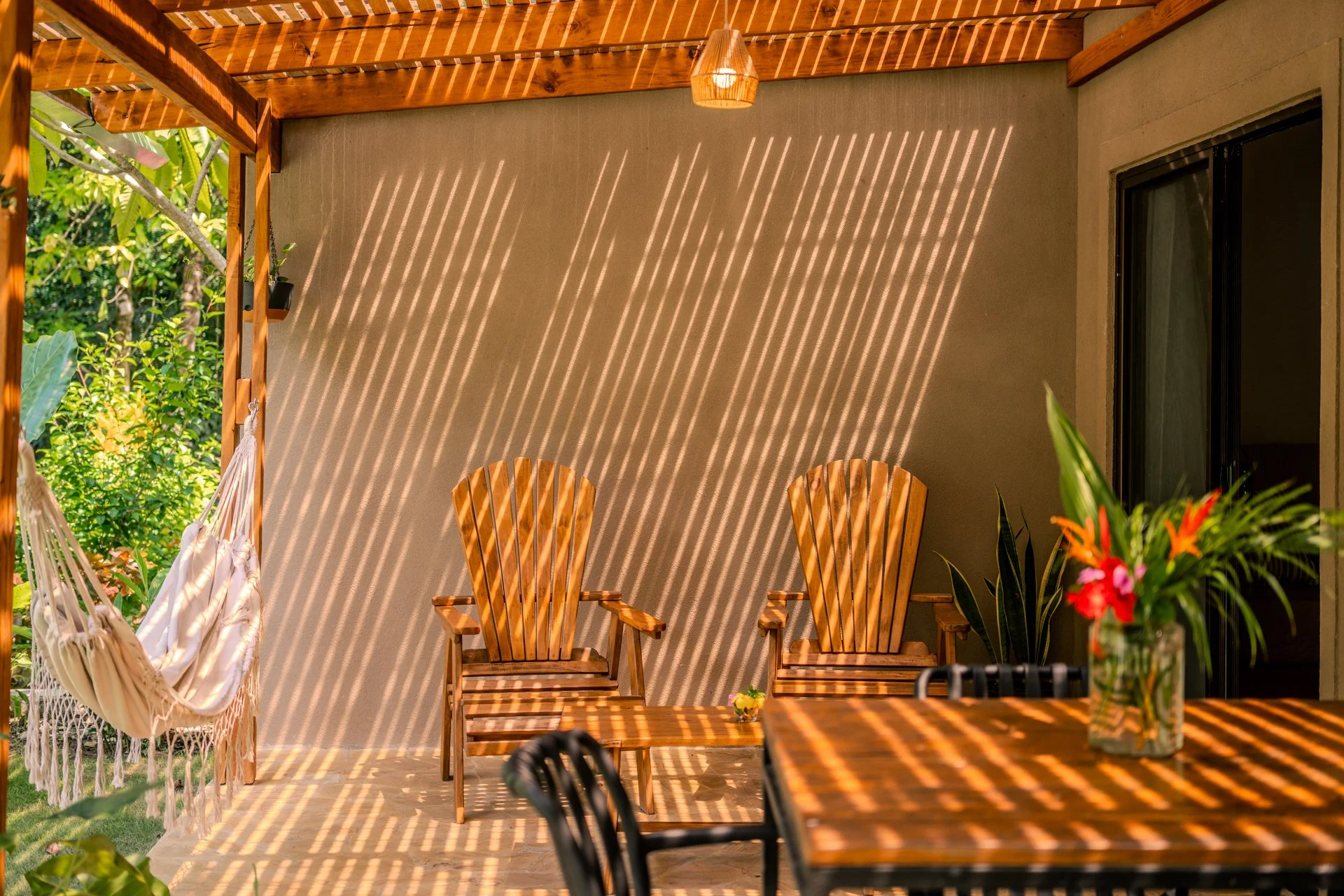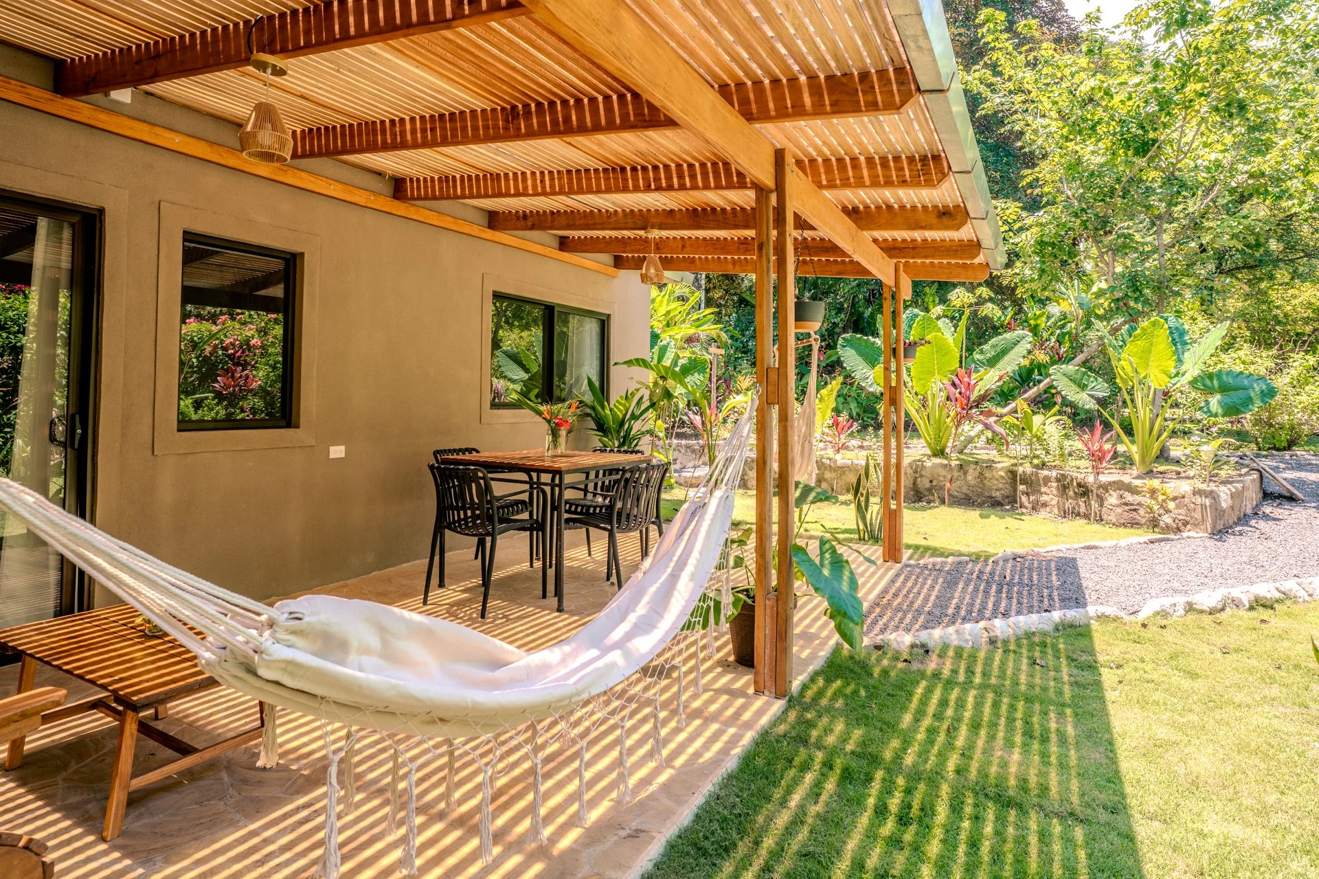 Discover our amazing recently built cabin, designed for four people, offering a unique experience within 80m2. With a fully equipped kitchen, a queen-size bed, and two single beds, we blend comfort and versatility. This cabin provides a large terrace with hammocks, sitting area and outdoor chairs where you can delight in observing monkeys and other animals. While the pool and barbecue area are shared spaces, everything else is exclusively yours. Immerse yourself in nature and create unforgettable memories in this space designed for wonder and connection.